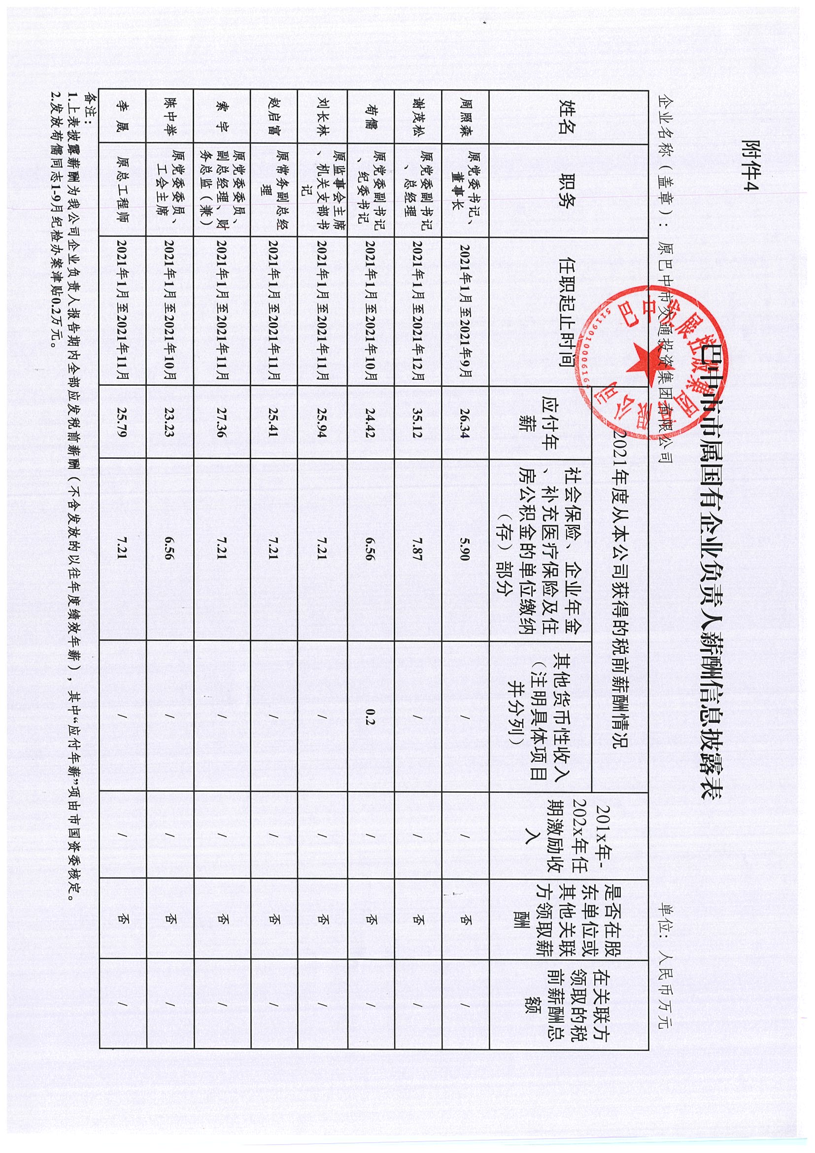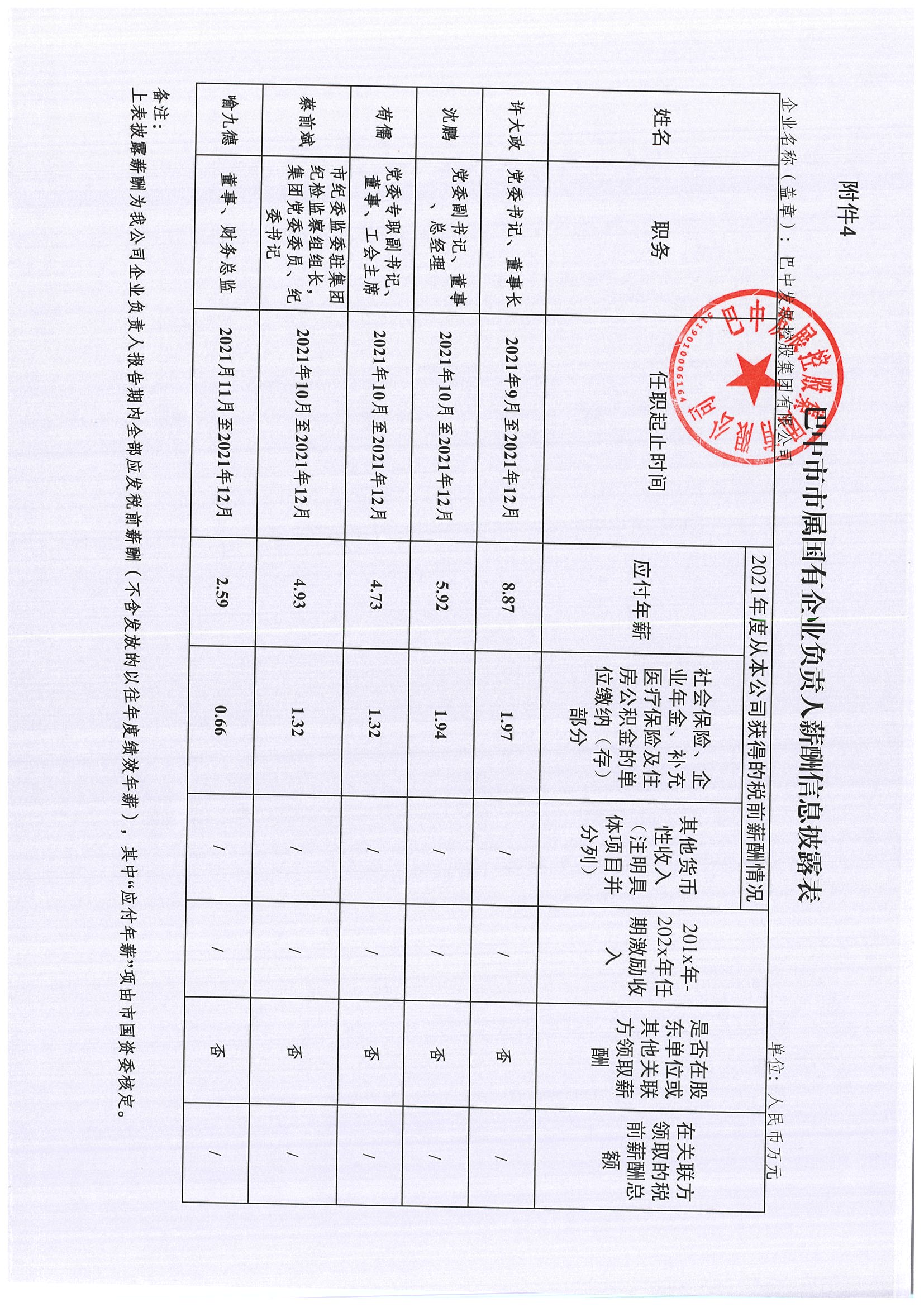 巴中市市屬?lài)?guó)有企業(yè)負(fù)責(zé)人薪酬信息披露表