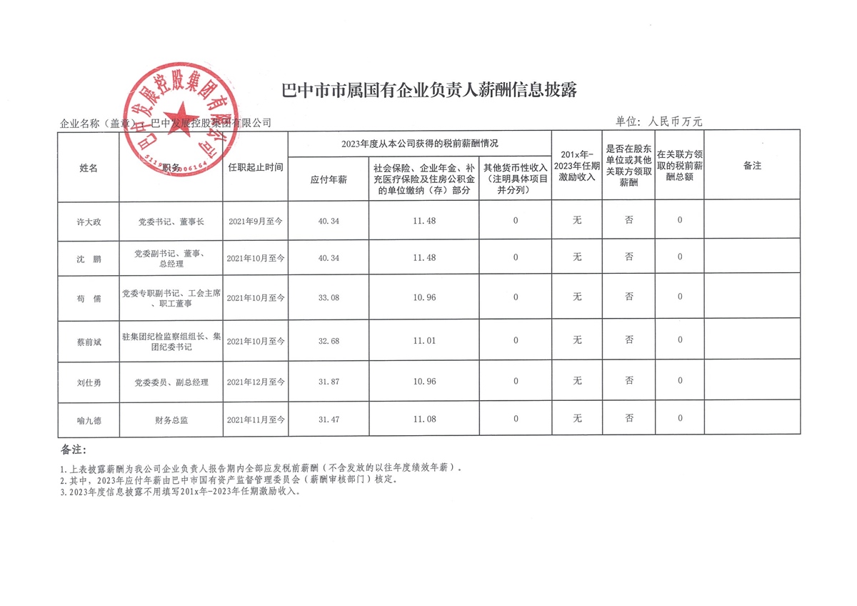 巴中市市屬國(guó)有企業(yè)負(fù)責(zé)人薪酬信息披露