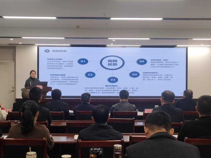 會上,競聘人員通過演講、PPT展示的方式,圍繞競聘崗位,提出推動各自所在企業(yè)市場化、實(shí)體化工作思路,全方位、多角度的展現(xiàn)出了個(gè)人競聘優(yōu)勢。