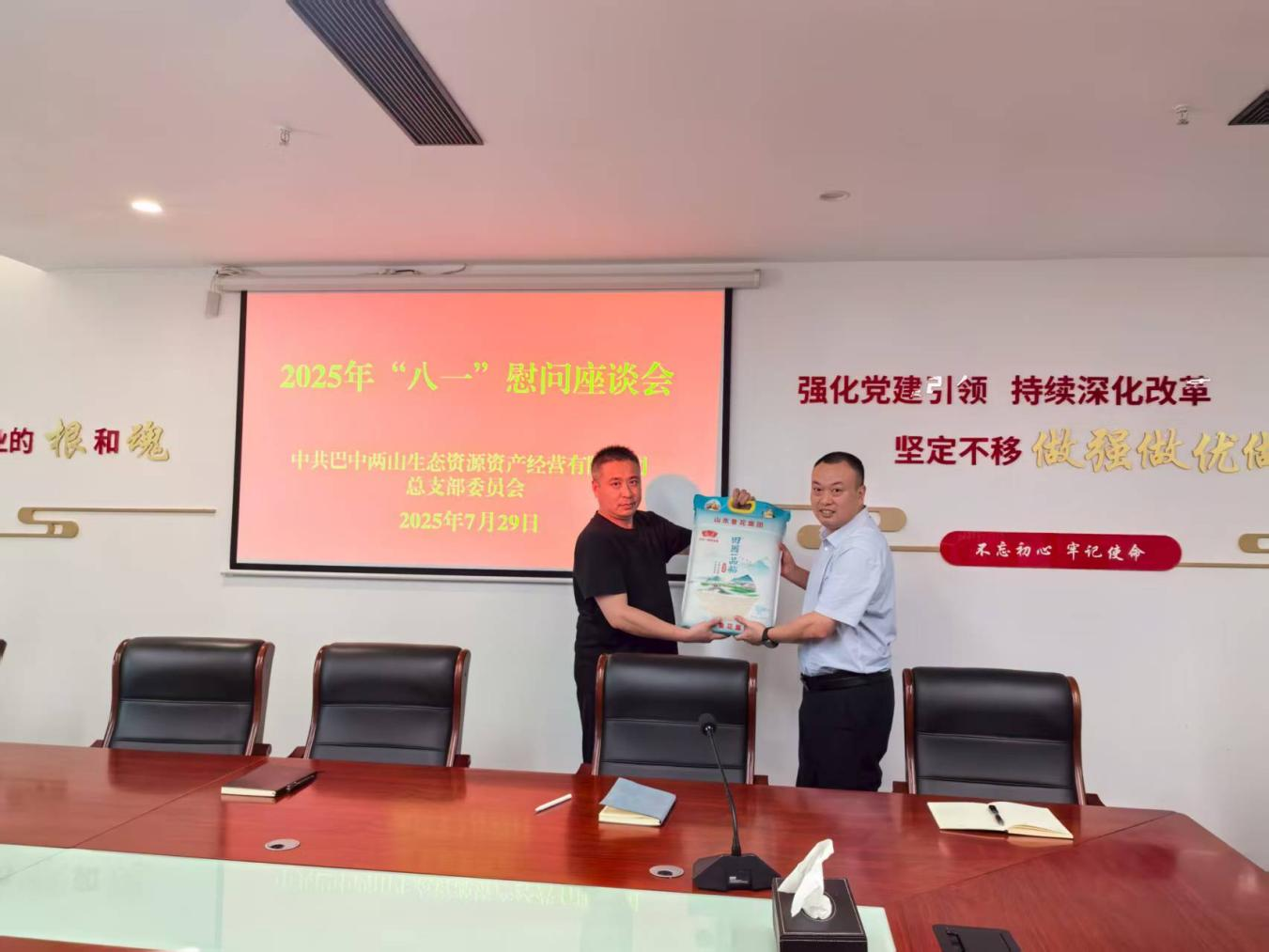 為深入學(xué)習(xí)貫徹習(xí)近平總書記對雙擁工作的重要指示精神,傳承和弘揚擁軍優(yōu)屬的優(yōu)良傳統(tǒng),激勵退役軍人干事創(chuàng)業(yè)熱情,2025年7月29日,巴中兩山公司開展退役軍人慰問活動。