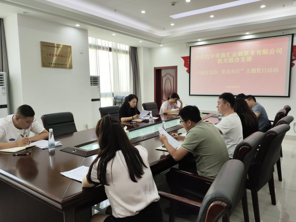 為進一步提高廣大黨員干部知詐、識詐、防詐、反詐意識,8月31日上午,中共巴中市鑫匯金融服務(wù)有限公司機關(guān)聯(lián)合支部開展“防詐反詐 黨員先行”主題黨日活動,機關(guān)聯(lián)合支部全體黨員、發(fā)展對象、入黨積極分子參加。