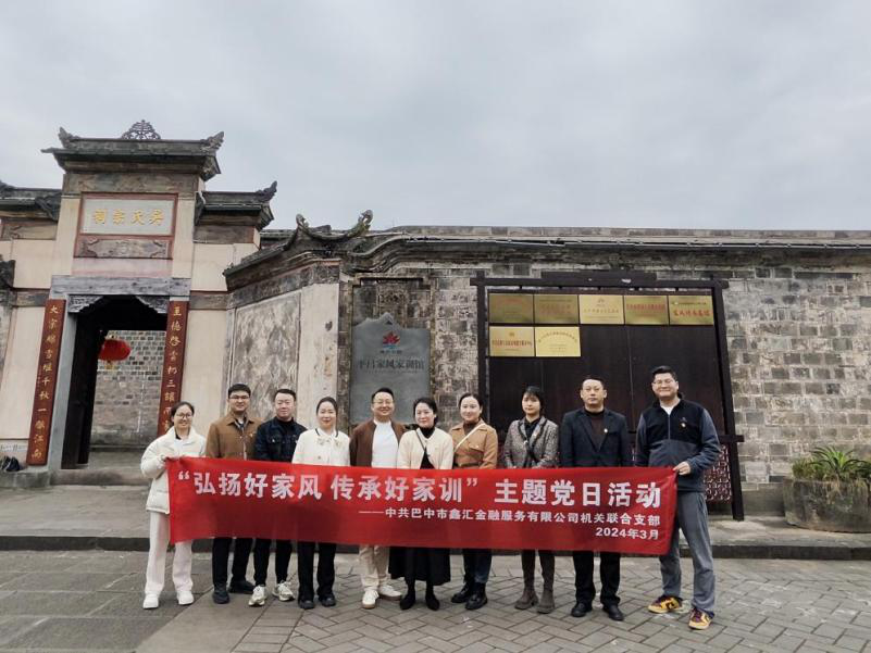 家風(fēng)正則黨風(fēng)清,家風(fēng)正則作風(fēng)優(yōu)。為進一步弘揚中華民族傳統(tǒng)美德,傳承良好家風(fēng)家訓(xùn),3月20日下午,中共巴中市鑫匯金融服務(wù)有限公司機關(guān)聯(lián)合支部前往平昌縣白衣古鎮(zhèn)開展“弘揚好家風(fēng)·傳承好家訓(xùn)”主題黨日活動,機關(guān)聯(lián)合支部全體黨員參加。