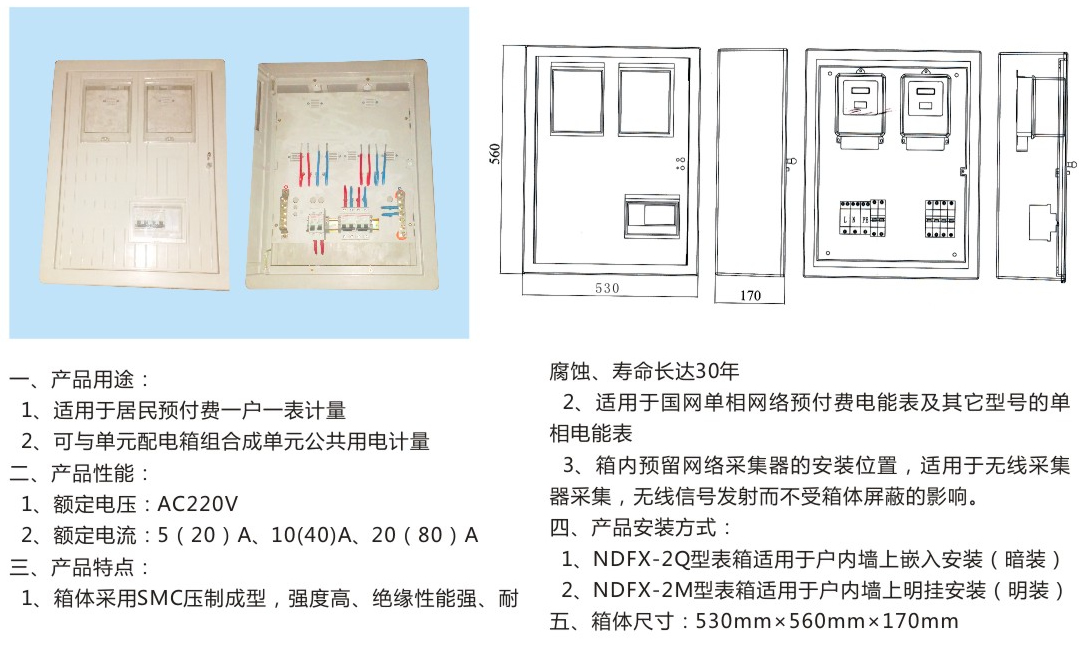 HLNDFX-2戶內(nèi)單相非金屬兩表計(jì)量箱