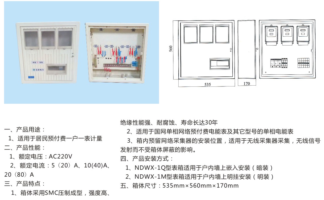 HLNDFX-3戶內(nèi)單相非金屬三表計(jì)量箱
